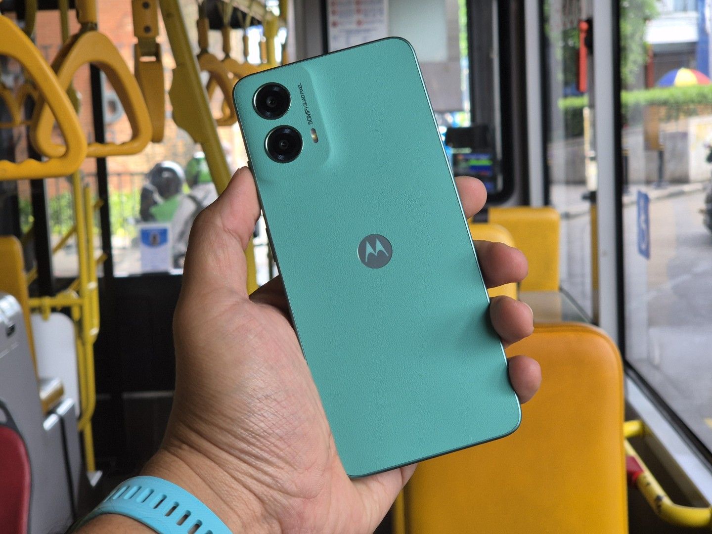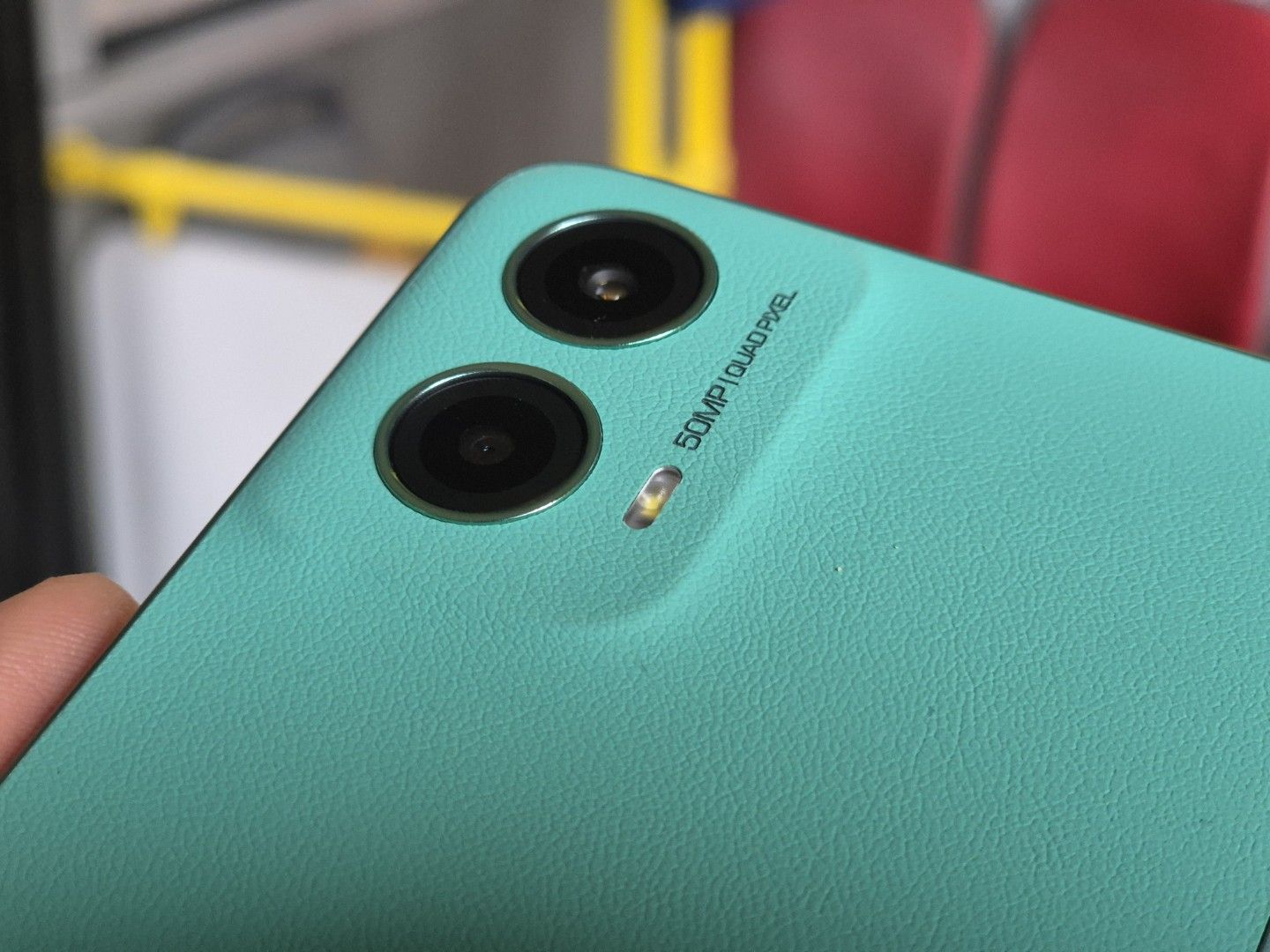 Namun justru karena itu, Moto G45 tampil istimewa. Tekstur kulit ini memberikan pengalaman memegang smartphone yang unik dan berbeda, bahkan kesan kualitas premium ini terasa menyeluruh hingga ke bagian hump kamera.