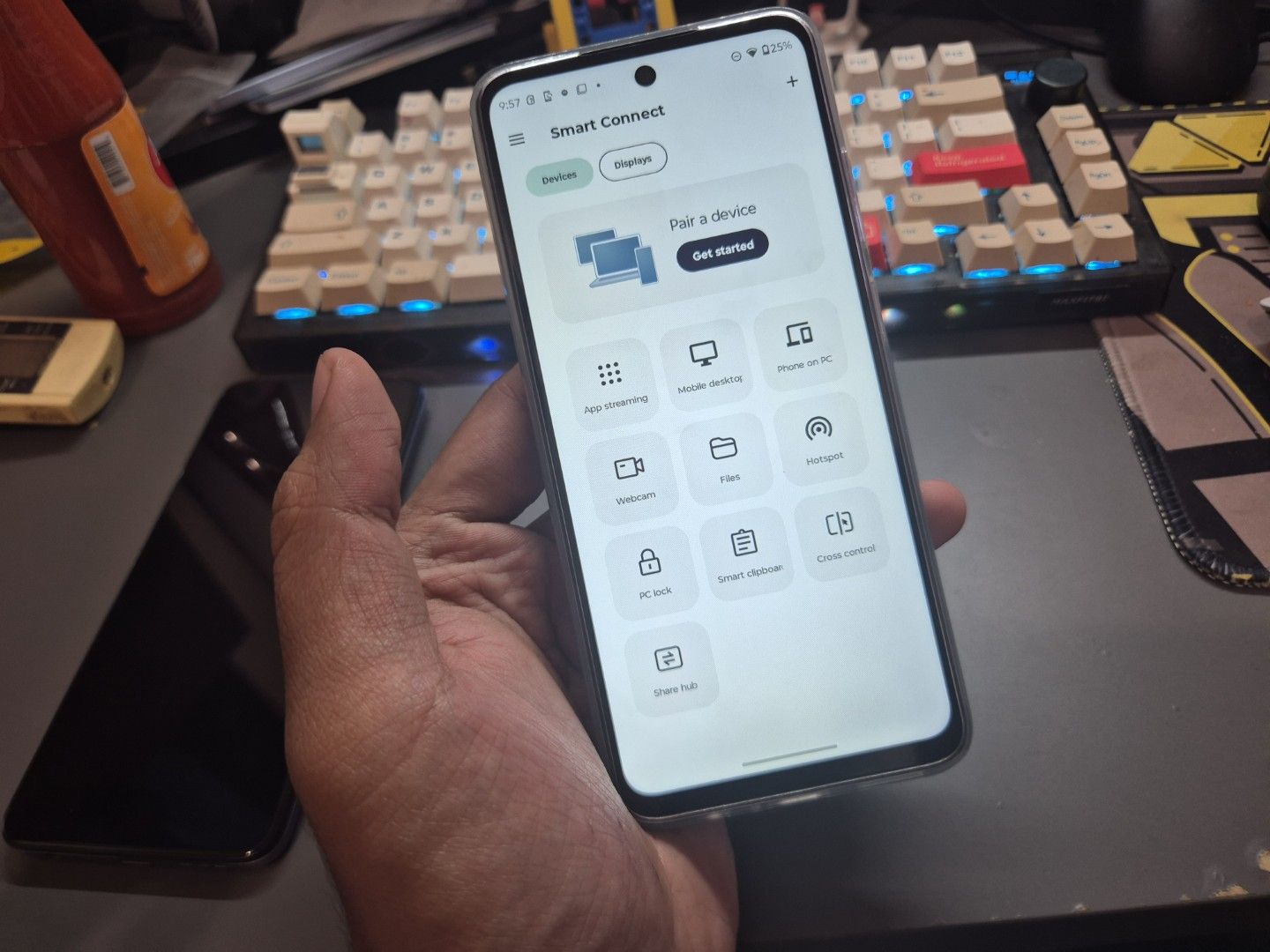 Fitur koneksi seperti dukungan Miracast membolehkan penampilkan layar ke monitor luar yang memiliki tampilan serupa dengan desktop, di mana perangkat seluler bisa digunakan sebagai touchpad.