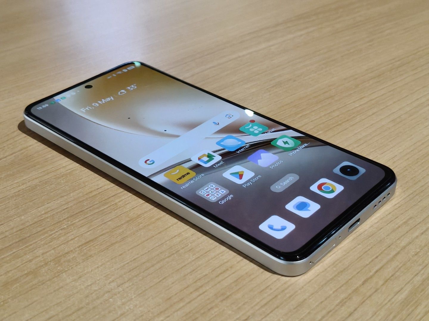 Material secara fisik, perangkat ini tetap termasuk dalam kategori menengah dengan rangka dari bahan plastik serta tutup belakang juga terbuat dari plastik, meski demikian, realme telah mendesainnya dengan kokoh.