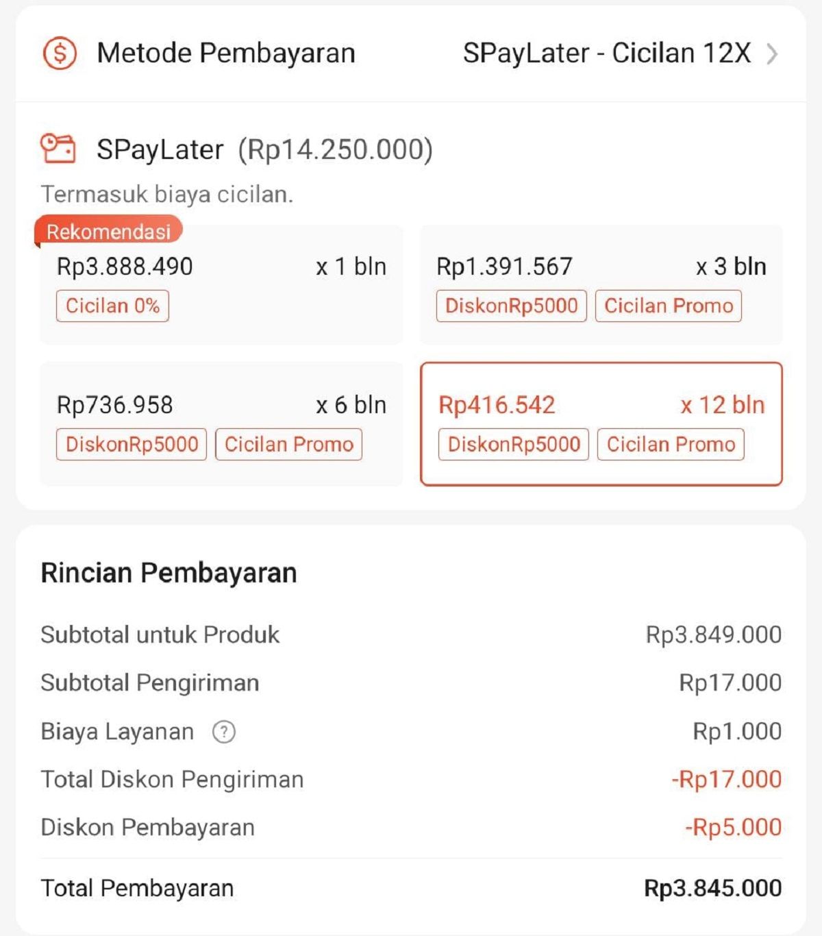 Harap dimengerti bahwa jumlah angsuran dapat berfluktuasi bergantung pada promosi yang ada serta suku bunga dari perusahaan pemberi kredit. Anda pun mungkin akan memperoleh diskon ekstra apabila menggunakannya dengan kode voucher spesifik selama proses pembayaran online.